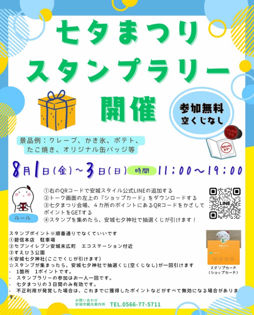 七夕まつりスタンプラリー開催のお知らせ(安城市観光案内所)